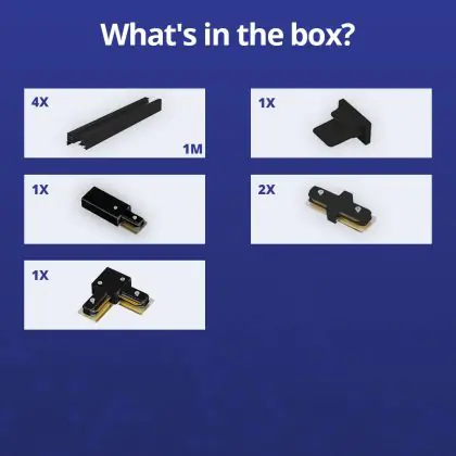 | Nom du fabricant | Complete L shaped 1-Phase Track Set Black – 2 x 2 meter incl. End Cap, Power Connector and L -Conne | |