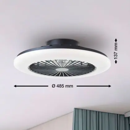 Investissez dans une solution à long terme, de heures en choisissant le Brilliant Salerno Ventilateur Plastique Métal Noir 36W 4700lm - 830-865 CCT+RGB | 485mm - Télécommande Dimmable.