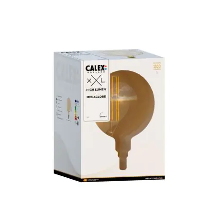 Calex XXL Mega Lumen élevé Dorée Globe LED E27 G125 Filament 3W 250lm- 821 Blanc Très Chaud | Dimmable est le produit de remplacement parfait pour votre ancienne ampoule de 100W avec un culot E27 grâce à sa technologie LED. Passer à la LED vous offrira de nombreux avantages !