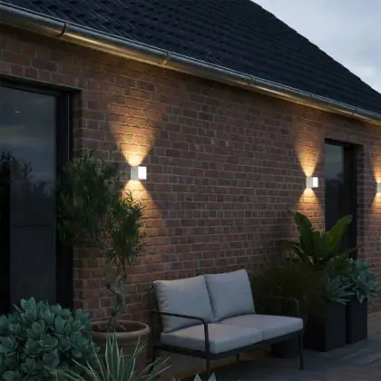 Vous recherchez spécifiquement une applique LED que vous pouvez utiliser à l'extérieur ? Vérifiez bien l'indice IP du luminaire. La classe IP indique le niveau de protection du luminaire contre les corps étrangers et les contacts (premier chiffre) et contre l'eau (deuxième chiffre). Plus les chiffres sont élevés, plus le luminaire est robuste et résistant à l'eau. A partir de l'IP44, un luminaire peut être utilisé à l'extérieur sous certaines conditions - le qualificatif "étanche" n'est attribué à un luminaire qu'avec un IP d'au moins 54.