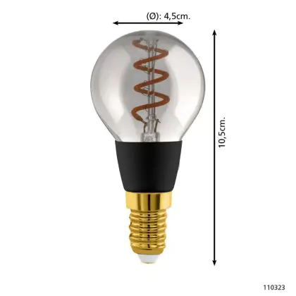 Eglo Connect.Z Smart LED Boule E14 Filament Smokey 4W 150lm - 820 Blanc Très Chaud | Dimmable - Équivalent 15W est le produit de remplacement parfait pour votre ancienne ampoule de 15W avec un culot E14 grâce à sa technologie LED. Passer à la LED vous offrira de nombreux avantages !