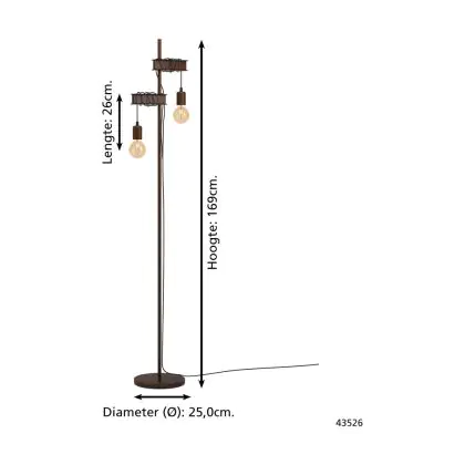 Caractéristiques du Eglo Lampadaires Salon Townshend 4 Acier Brun Noir | IP20 - Convient pour 2x E27