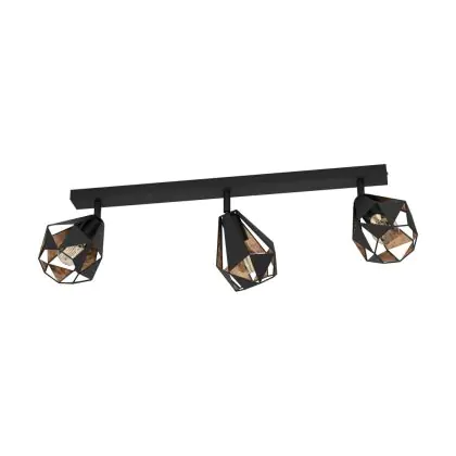 Caractéristiques du Eglo Plafonnier Carlton 7 Acier Noir Cuivre | IP20 - Convient pour 3x E27
