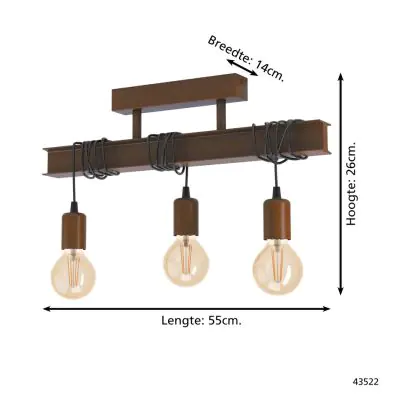 Eglo Plafonnier Townshend 4 Acier Brun | IP20 - Convient pour 3x E27