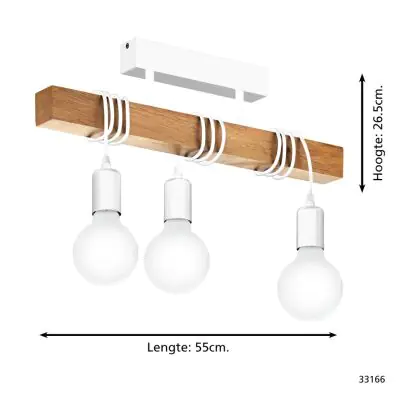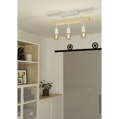 Investissez dans une solution à long terme, de heures en choisissant le Eglo Plafonnier Townshend Acier Blanc Bois | IP20 - Convient pour 3x E27 .