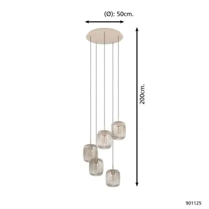 Le Eglo Suspension Luminaire Romazzina Acier Sablonneux | Convient pour 5x E27 doté d’un culot se distingue par les points suivants. La température de couleur de Kelvin, laquelle vous permettra de fournir une lumière de qualité et adaptée à votre environnement! Le code couleur, , n’inclut pas seulement la température de couleur, mentionné précedement, il indique également l’indice de rendu des couleurs. Cette caractéristique rend compte du naturel des couleurs des objets éclairés. L’indice de rendu des couleurs pour ce produit est de , idéal pour son utilisation. Ci-dessous vous trouverez une liste des nombreux avantages de cette référence.