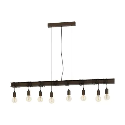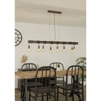 Description Eglo Suspension Luminaire Townshend 4 Acier Brun Noir | IP20 - Convient pour 8x E27