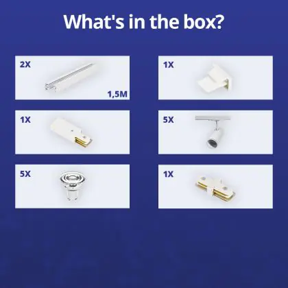Description Ensemble complet Rail Monophasé Rail 3 Mètre Blanc | incl. 5x Spot + GU10 2700K 3W Dimmable + Embout, Connecteur d’Alimentation et I-Connecteur