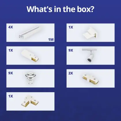 | Nom du fabricant | Complete L shaped 1-Phase Track Set White incl. 9x Spot fixture + GU10 2700K 3W Dim – 2 x 2 meters i | |