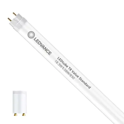 Description Ledvance Tube LED T8 Value (EM/Direct 230V) Standard Output 18.3W 2000lm - 830 Blanc Chaud | 150cm - Équivalent 58W