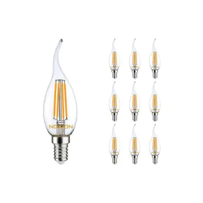 Description Lot 10x Noxion Lucent LED E14 Bent-tip Bougie Filament Claire 4.5W 470lm - 827 Blanc Très Chaud | Dimmable - Équivalent 40W