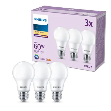 | Nom du fabricant | Box 3 stuks - Philips LED Lamp Mat - 60 W - E27 - Warmwit licht | |