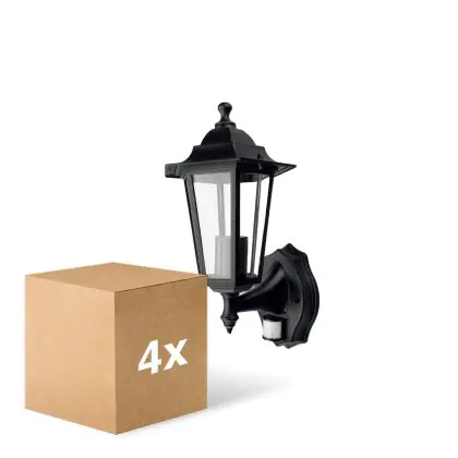Investissez dans une solution à long terme, de heures en choisissant le Lot 4x D'Lite Applique Murale Helora Noir | IP44 - Convient pour 1x E27 - Détecteur De Mouvement.