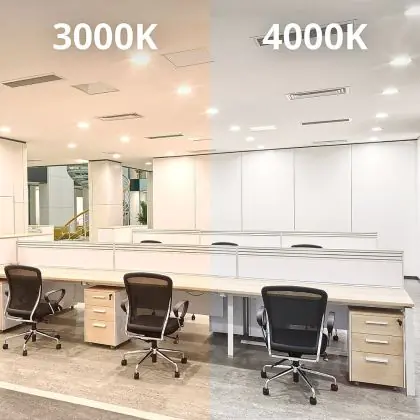Les downlights blanc chaud (3000K) sont mieux adaptés aux zones générales telles que les cantines, les salles d'attente, les halls de réception ou les couloirs.