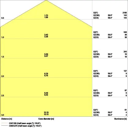 La valeur IP détermine la protection contre la poussière et les projections d'eau. Le premier chiffre indique le degré de protection contre le risque d’entrée de corps solides, compris entre 0 et 6. Le second chiffre concerne toutefois la protection contre l'entrée de substances liquides, qui peut varier de 0 à 8. Ce luminaire a un IP44 – Résistant aux éclaboussures