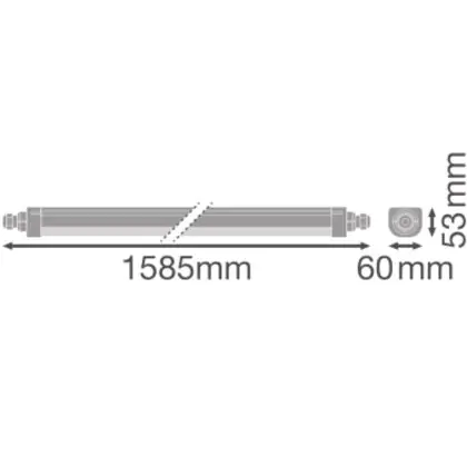 Cette réglette LED d'une longueur de 1585 mm est l'alternative durable et économe en énergie à un luminaire fluorescent de même format et avec deux tubes fluorescents de 2x58 Watt.