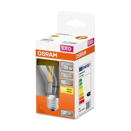 Grâce à la technologie LED moderne, l'ampoule LED E27 Osram 4 watts consomme particulièrement peu d'énergie, de sorte que sa puissance est nettement inférieure à celle des lampes à incandescence classiques. Néanmoins, le rendement lumineux, c'est-à-dire la valeur lumineuse, reste le même. Ainsi, il peut avoir une efficacité lumineuse particulièrement élevée de lm/W. Cela a un effet particulièrement positif sur votre facture d'électricité, car avec ce produit, vous avez besoin de beaucoup moins d'énergie pour obtenir la luminosité dont vous avez besoin.