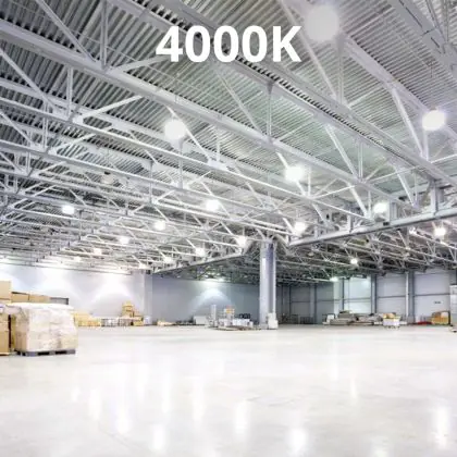 - Le blanc froid (4000K) aux écuries, entrepôts, hangars et halls de production,
