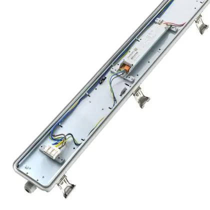 La durée de vie d’un tube fluorescent est d’environ 20 000 heures. La durée de vie d’une réglette LED peut aller jusqu’à 70 000 heures. Si nous faisons un simple calcul : votre luminaire est allumé 12 heures par jour, 5 jours par semaine, ce qui ramène à un total de 60 heures par semaine. 60 heures x 52 semaines = 3120 heures par an. Il vous faudra donc bien plus de 20 ans pour atteindre 70 000 heures !