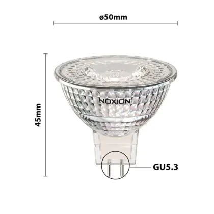 Depuis des années, Noxion est la marque de luminaires qui connaît la plus forte croissance en Europe. Et cela se reflète dans la qualité de cette ampoule LED GU5.3 (MR16) Noxion. Une bonne occasion de dire au revoir à votre ampoule halogène GU5.3 et de choisir ce remplacement LED écologique, durable et efficace. Avec cette ampoule LED GU5.3 Noxion, vous bénéficierez entre autres d'un rendement lumineux élevé de 345 lumens, cette ampoule vous propose une durée de vie de 15000 heures.
