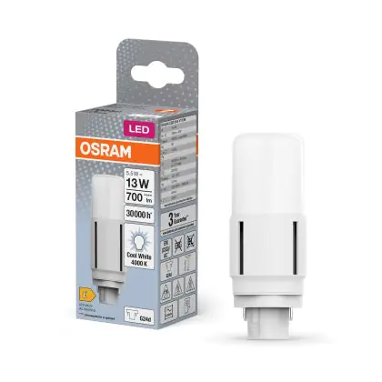 Osram Dulux-D LED 5.5W 700lm - 840 Blanc Froid | 2-Pins - Équivalent 13W est l’alternative parfaite à un PL standard de 13W ou une lampe Dulux avec 2 tiges (connecteurs). Cette ampoule LED a une durée de vie plus étendue et vous profitez de la garantie totale Lampdirect.be de 3 ans.