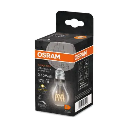 | Nom du fabricant | Vintage 1906 LED CLASSIC A,B,P SLIM FILAMENT DIMMABLE 4.8W 827 Clear E | |