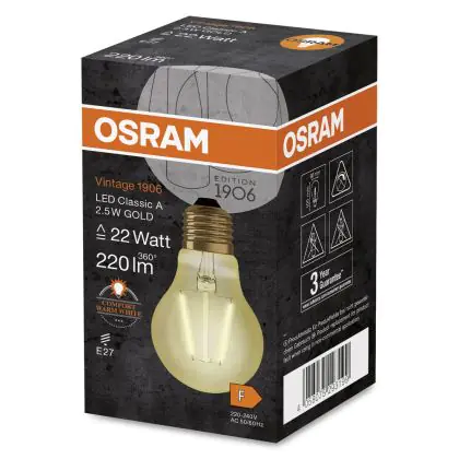 | Nom du fabricant | Vintage 1906 LED CL A FIL GOLD 22 non-dim 2,5W/824 E27 | |