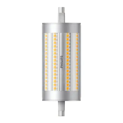 Philips Corepro LED Lineair R7s 118mm 17.5W 2460lm - 840 Blanc Froid | Dimmable - Équivalent 150W est le remplacement parfait pour vos lampes halogènes traditionnelles R7s de 150W avec un code couleur 840 Blanc Froid. Les ampoules LED ne produisent pas de chaleur et n’émettent pas de radiation UV. Passez à la LED vous offrira de nombreux avantages !