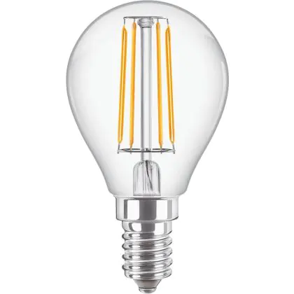 Description Philips Corepro LED Lustre E14 Boule Filament Claire 4.3W 470lm - 827 Blanc Très Chaud | Équivalent 40W
