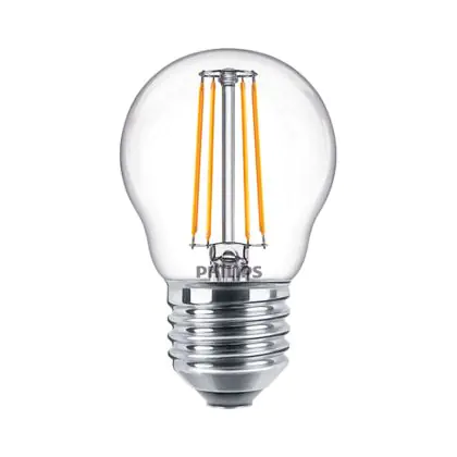 Description Philips Corepro LED Lustre E27 Boule Filament Claire 4.3W 470lm - 827 Blanc Très Chaud | Équivalent 40W