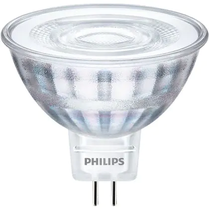 Philips Corepro LED Spot GU5.3 MR16 4.4W 345lm 36D - 827 Blanc Très Chaud | Équivalent 35W est le remplacement parfait pour pour vos lampes halogènes traditionnelles GU5.3 de 35W avec un code couleur 827 Blanc Très Chaud. Cette lampe a une forme Spot avec un diamètre de 50 mm. Les capuchons des lampes se situent à 5,3 mm les uns des autres. Les ampoules GU5.3 sont plus sécuritaires dans les pièces humides que les lampes halogènes 230 Volts, parce qu’elles fonctionnent sur 12 Volts. Par conséquent, un transformateur est requis pour convertir la tension. Vous pouvez en trouver sous la rubrique "Accessoires" sur cette page de produits. Le transformateur dont vous avez besoin dépend du nombre d’ampoules que vous souhaitez connecter. Notre service clientèle peut vous aider à choisir le bon. Changez pour une LED vous offrira de nombreux avantages !