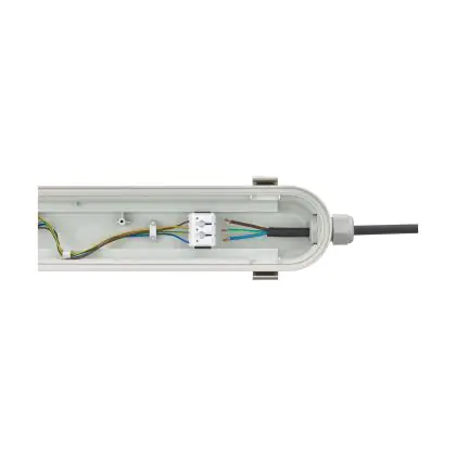 Un élément important des réglettes LED à prendre en compte est la valeur IP. Elle indique dans quelle mesure un produit est étanche à la poussière et à l'eau. L'indice IP44 signifie qu'un appareil est étanche aux éclaboussures et à partir de l'indice IP65, un luminaire LED est totalement étanche à la poussière et à l'eau. La valeur IP de cette réglette LED est : IP65 – Résistant à la poussière et à l'eau (jets d'eau). Si une réglette LED est totalement étanche, vous pouvez parfaitement l'utiliser dans des endroits où elle risque d'être mouillée, comme les écuries, les hangars, les sous-sols, les parkings et les espaces extérieurs.