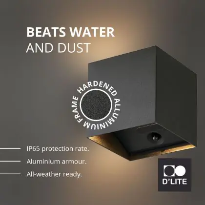 Geef je buitenruimte een moderne upgrade met de D'Lite LED Wandlamp Elingen Up & Down – draadloos, stijlvol en weerbestendig.
