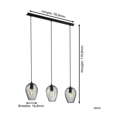 Beschrijving Eglo Hanglamp Newtown Staal Zwart | IP20 - Geschikt voor 3x E27