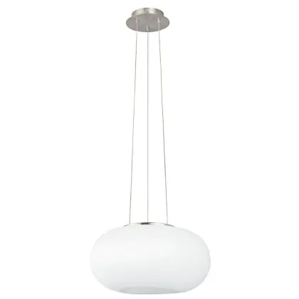 Beschrijving Eglo Pendelarmatuur Optica Staal Satijn Nikkel | Geschikt voor 2x E27