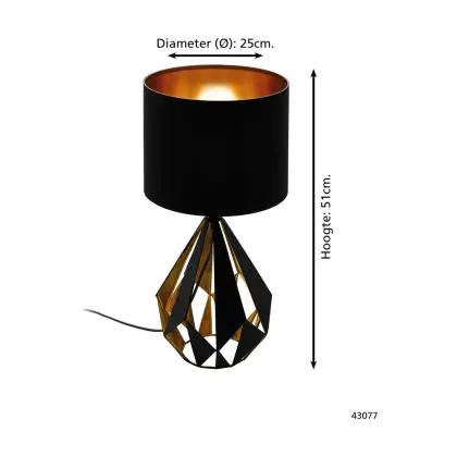 Eglo Tafellamp Carlton 5 Staal Zwart Koper | IP20 - Geschikt voor 1x E27