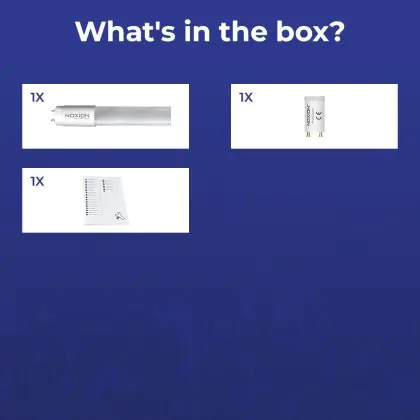 Deze Noxion LED TL buis heeft een Lumen / Watt efficiëntie van lm/W. Dit is de waarde die je verkrijgt door de lichtopbrengst (2650 Lumen) te delen door het wattage (16W) van deze lichtbron. Hoe weet je of jouw lichtbron een goede efficiëntie heeft? In dit geval ligt de lm/W waarde boven de 65. Je kunt er ook voor kiezen om een LED geïntegreerd TL armatuur te kopen. Hierbij heb je de keuze uit diverse (waterdichte) LED montagebalken, die in een divers aantal Lumen verkrijgbaar zijn. Een (dimbaar) LED paneel is ook een slimme optie, met name voor ruimtes met een systeemplafond (eenvoudige installatie) en kantoren (UGR<19 varianten).