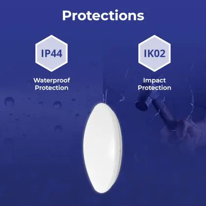Een belangrijk element van LED plafondlampen is de IP waarde. Dit getal geeft de mate van bescherming aan tegen binnendringen van stof en vocht/water. Vanaf IP65 is het stof- en waterdicht. De IP waarde van deze LED plafondlamp is: IP44 - Stof- en Spatwaterdicht. Ben je op zoek naar een LED plafondlamp voor buitengebruik? Dan voldoet een product met een IP44 waarde (spatwaterdicht) al. Meer baat bij een product met een ander IP waarde? Klik dan hier voor ons complete assortiment aan LED plafondlampen en gebruik het zoekfilter 'IP waarde' aan de linkerkant van de pagina. Let bij het plaatsen van een LED plafondlamp in de buitenlucht ook op de IK waarde (slagvastheid). De IK waarde van deze LED lamp is: IK02 - 0.20 Joule.
